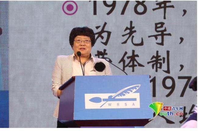 国务院扶贫办综合司司长、新闻发言人苏国霞在欧美同学会第二届国际智库论坛暨菖蒲河论坛开幕式上发言。欧美同学会供图