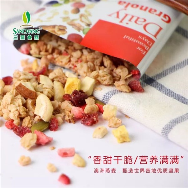 2008年经济形势迫使中日双方企业坐下来冷静思考今后的发展方向,决定从简单的初加工升级到油炸、烘烤、裹衣等深加工、并增建油炸、豆果生产线。工厂逐渐进入不断创新的良性发展期。于2015年在国内首家研发无添加纯烘焙“洋“食品—坚果水果即食麦片,成功制定了国内第一个混合麦片的企业标准、并于当年成功申请了产品的生产许可。从花生及坚果加工成功转型为营养早餐、冲调类食品加工企业,得益于日本投资方的全方位配合及工厂研发、生产团队的辛勤付出。期间,公司多次从日本聘请专家来工厂现场指导,经过三昌团队的多次研发,才成就了今天在国内畅销的坚果水果麦片产品。到目前为止,公司为60多家客户(罗森中国、711便利、全家便利、伊藤洋华堂、京东、小米有品、华联等等国内外知名零售品牌)提供OEM贴牌生产,并通过代理商在国内各主要城市销售自己的”SANCHANG“品牌产品。