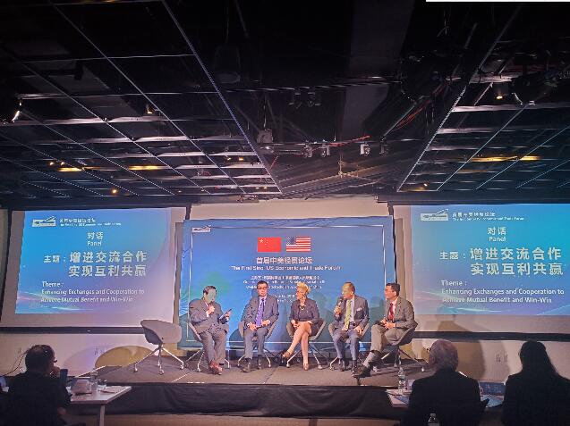 王丕君作开场致辞。王丕君指出,中美两国自建交以来形成的紧密合作不仅使两国获益,也惠及全球。随着全球化的发展,世界各国的联系日益密切,相互依存越来越强。中美两国作为世界第一、第二大经济体的经贸关系不仅对两国有重要意义,对全球经济稳定和发展也有着举足轻重的影响。由于两国经济发展阶段、经济制度不同,存在经贸摩擦是正常的,这也存在于美国与其他国家以及其他国家之间。尽管两国历史长短不同、文化差异明显,但都应该持续坚持平等、理性、相向而行的原则,增进互信、促进合作、管控分歧、求同存异。