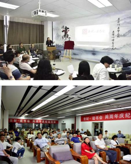 由学校留学归国人员联谊会会长罗亚发起的贵州财经大学贵财·读书会自2017年6月6日成立以来,成功举办了十八期读书分享活动。通过活动提升海归人员的文化素质,在全体师生中掀起读书高潮,不断更新观念、拓展视野、交流思想,致力于营造清风缕缕满校园的书香氛围,成为贵州财经大学“人文贵财”的一张靓丽名片。贵州大学、贵州师范大学、贵州民大、贵州医科大等高校的多位海归学子慕名前来学习交流,增强了贵州财经大学留学归国人员联谊会的吸引力和凝聚力,得到了贵州留联会的高度肯定和推荐。在2019年4月14日《贵州都市报》上的“大学城里书香浓”专版刊上登了读书会活动介绍和照片。同时在《贵州日报》文艺版上的“征集 贵州这些特色读书会”栏目中详细推介了贵财·读书会。