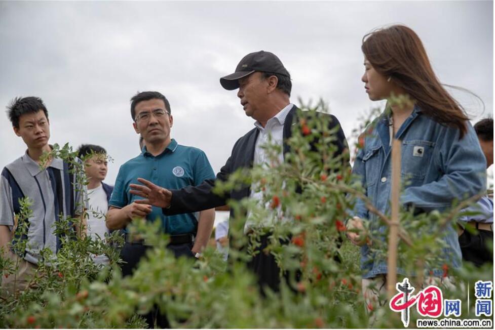19日下午,留学人员代表们走访中宁县鸣沙镇玺赞生态枸杞庄园,了解枸杞种植、加工过程。