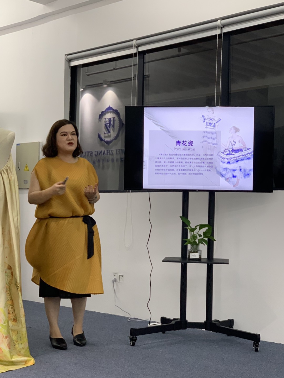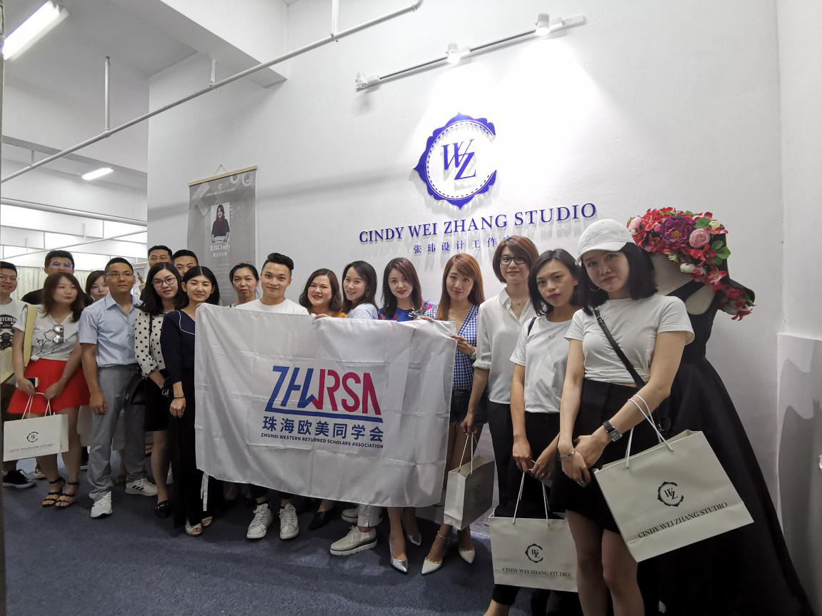 活动中,会员一行参观了珠海欧美同学会理事、Cindy Wei Zhang品牌创始人兼设计师张玮的工作室并听取了张玮的创业、创作经历以及对中国传统文化和时尚的理解。张玮自接触设计以来,坚持把中国传统元素融入每一系列的设计之中,致力于传播中国传统文化和中国色彩。从第一件作品《青花瓷》系列,到《水色》、《鼓藏》、《养花》、《漆》、《本草纲目》、《一念》和最新系列《檐角》,她将青花瓷、水墨画、苗族图腾、中草药、中国漆器、敦煌壁画、故宫檐角的镇宅瑞兽等中国传统元素以时装设计的形式向世界展现,获得了国内外时尚界的关注和认可。