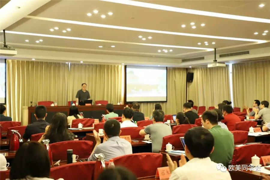 王丕君作辅导报告时和大家一起重温了欧美同学会的光辉历程,回顾了党的留学政策演进过程,并带领全体学员学习了2013年以来习近平总书记关于留学事业和留学人员工作的重要讲话精神。