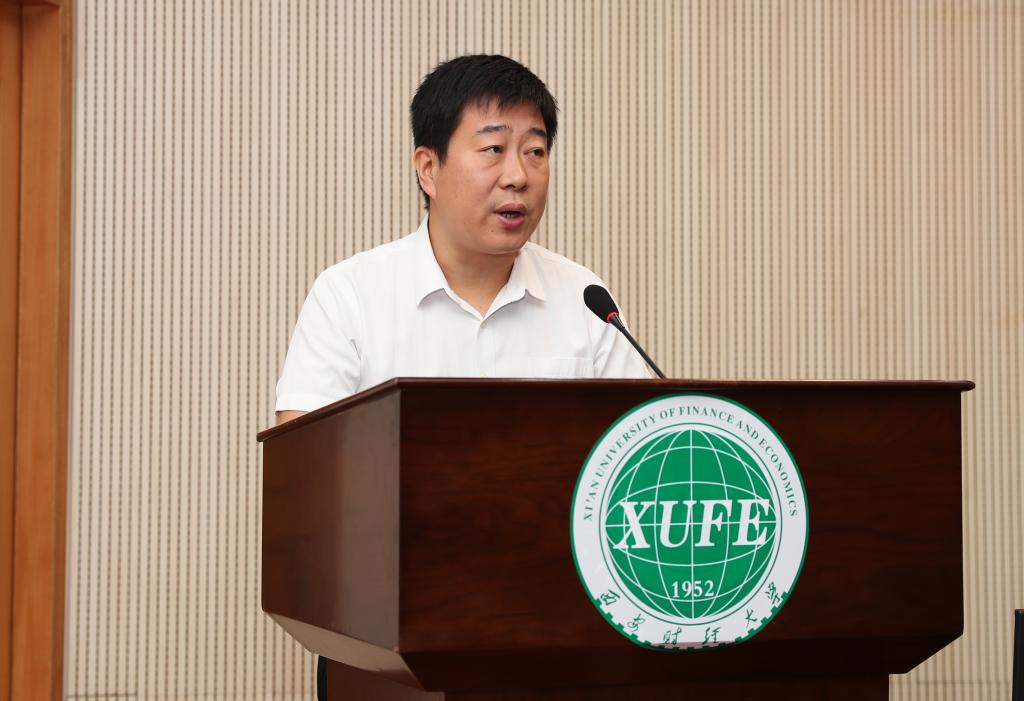 7月9日上午,西安财经大学归国留学人员联谊会成立大会在长安校区行政楼一楼视频会议室召开。省委统战部副部长唐勇、省委教育工委副书记李智军、省归国留学人员联谊会秘书长胡久炎、省委统战部五处处长张亚红、省委教育工委统战部副部长白莹应邀出席。校党委书记杨涛,校长方明,党委副书记凌喜春、阎东明,纪委书记薛博,副校长李佼瑞出席大会。大会由党委副书记凌喜春主持。校统一战线工作领导小组成员,各基层党委(党总支、直属党支部)书记、统战委员,校留联会全体会员,校民主党派(团战团体)负责人、学生代表150余人参加大会。