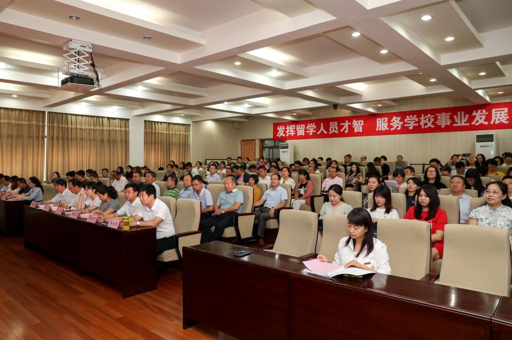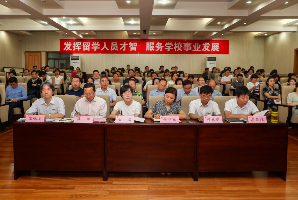 党委书记杨涛讲话,他说,回顾学校办学历程,处处凝结着归国留学人员的智慧和贡献。一直以来,学校党委高度重视归国留学人员工作,将其作为人才强校的重要力量,通过“走出去,请进来”等方式,不断开拓教师国际化、多元化视野。新成立的归国留学人员联谊会,在学校党委与归国留学人员之间架起了桥梁和纽带,为归国留学人员提供了协作发展的平台。同时他还提出几点要求:一是希望留联会把思想引领贯穿归国留学人员工作全过程;二是紧紧围绕学校教育教学中心和改革发展大局开展工作;三是以政治建设为统领不断提升组织能力和领导能力;四是希望学校相关部门大力支持和关心留联会工作。希望留联会会员把个人价值追求和学校发展、国家进步紧密结合起来,奏响个人事业奋斗的精彩乐章。