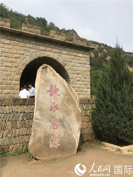 梁家河知青水井旁的石碑,上书“饮水思源”(徐祥丽摄)