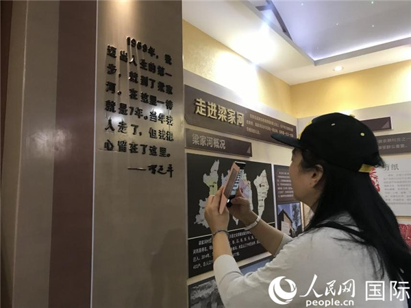 在梁家河村史馆,留学人员代表正拍摄照片(徐祥丽摄)