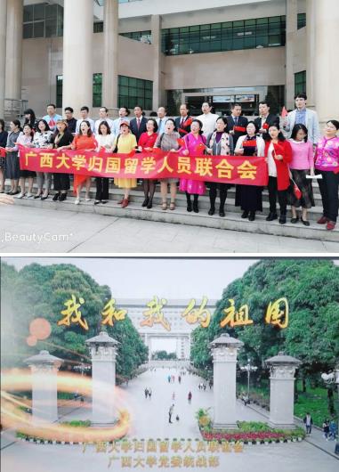 为庆祝中华人民共和国成立70周年,广西大学留学人员联谊会拍摄了快闪视频《我和我的祖国》表达海归学者深深的爱国之情。