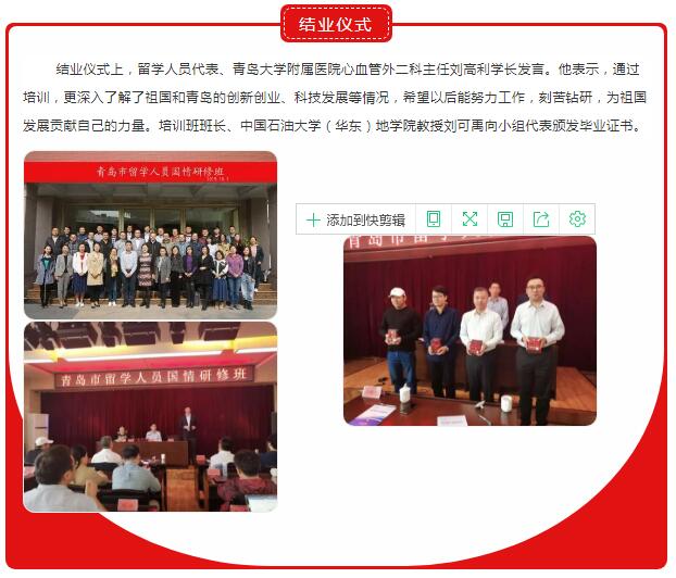 10月16日——18日,青岛市留学人员国情研修班在青岛市社会主义学院成功举办。
