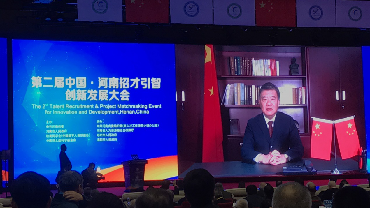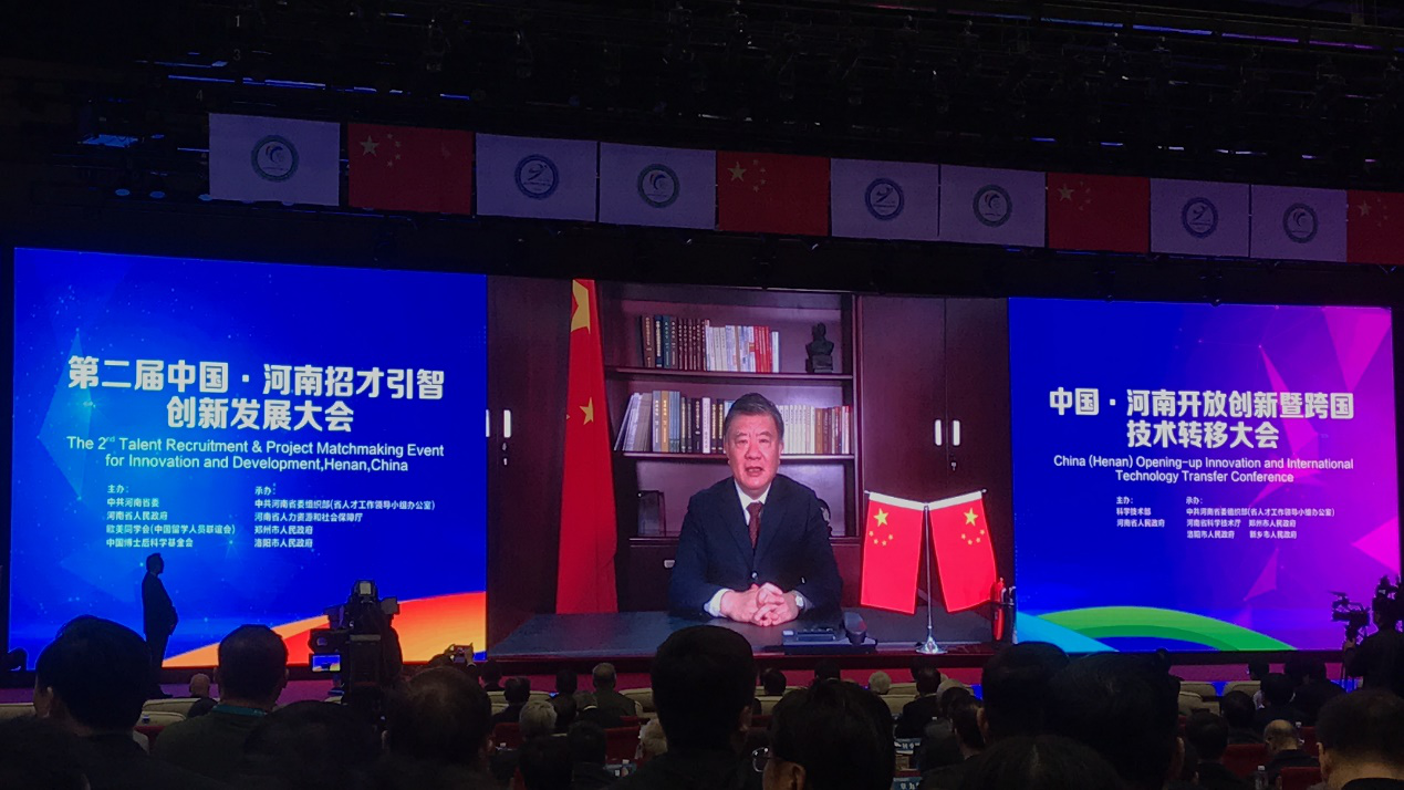 10月26日,由欧美同学会(中国留学人员联谊会)和中共河南省委、河南省人民政府、中国博士后科学基金会共同主办,以“广聚天下英才、让中原更出彩”为主题的第二届·河南招才引智创新发展大会在郑州国际会展中心盛大开幕。全国人大常委会副委员长、欧美同学会(中国留学人员联谊会)会长陈竺发表视频致辞。