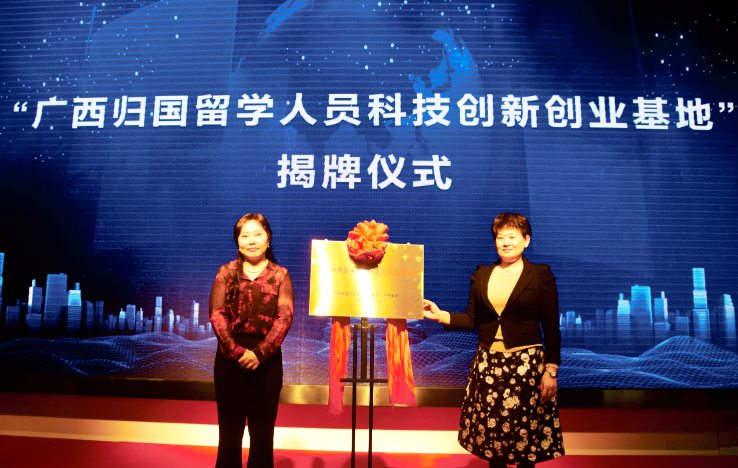 10月29日上午,第二家“广西归国留学人员科技创新创业基地”在安吉·华尔街工谷举行揭牌仪式,自治区党委统战部巡视员、部务会成员,机关党委书记,广西欧美同学会(广西留学人员联谊会)副会长李银霞见证揭牌。