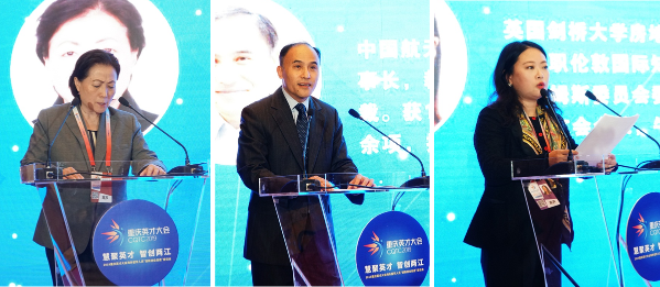 重庆两江新区欧美同学会副会长、中国汽车工程研究院风洞中心首席专家朱习加,中国航天科工集团航天云网公司副总经理、重庆工业大数据创新中心董事长祝守宇,重庆欧美同学会常务理事、重庆欧美同学会英国联络处首席代表、峰一国际CEO姜敖就创新主题进行发言。