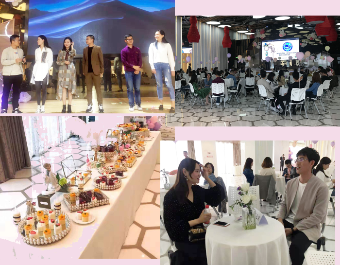 活动当天,各色花朵和大小气球点缀各处,把活动现场装点得既活泼又充满浪漫气息。下午2点,活动正式开始,青年海归们首先通过PPT简要了解了欧美同学会(中国留学人员联谊会)和湖北欧美同学会(湖北留学人员联合会)历史及发展现状,接下来又在现场主持人的引导下进行“破冰行动”游戏环节。海归青年男女们通过微信扫码开始随机配对做游戏,两人三足踩气球、你比划我猜等活动让现场响起阵阵笑声,气氛更趋热烈,大家也逐渐熟悉起来。在随后进行的“五分钟约会”环节,男士们按桌号轮流与女士们沟通交谈,进行进一步了解。短短几分钟的对话交流里笑声不断,大家一见如故,分享工作生活中的趣闻和兴趣爱好,活动还贴心地为大家准备了精致的茶歇,让青年海归们一边享受茶点,一边在轻松的氛围中交流沟通,结交朋友、共话人生。