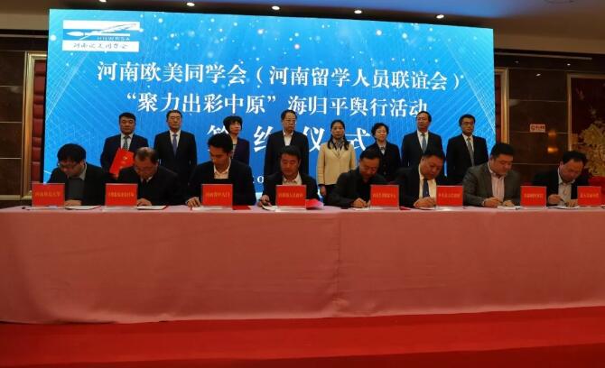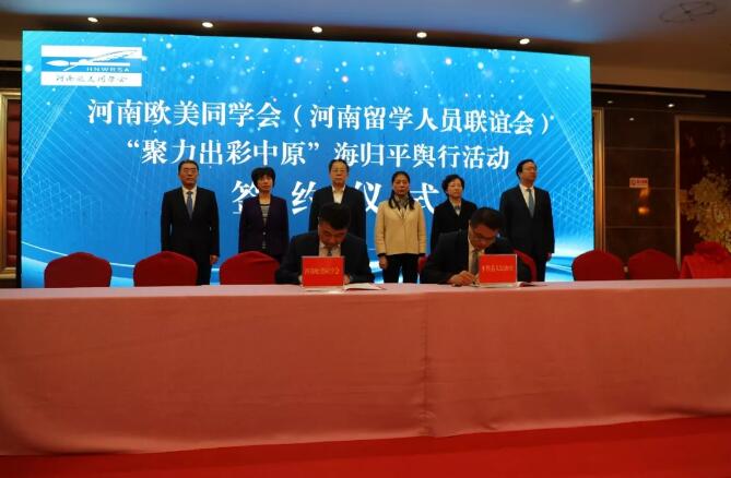 随后,河南欧美同学会与平舆县人民政府签署了战略合作框架协议,河南欧美会理事会员企业与平舆相关单位进行了项目合作签约,张震宇会长和平舆县委书记共同为留学人员社会服务基地(平舆)揭牌,我会李倩、杨喜田、李金铠、陈晓景、秦明周等学长被平舆县政府聘请为智库专家。