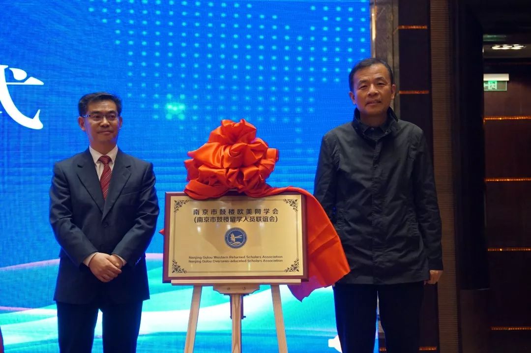 市委统战部副部长彭虎,区委常委、区委办主任、统战部部长丁健生共同为南京市鼓楼欧美同学会(南京市鼓楼留学人员联谊会)揭牌。