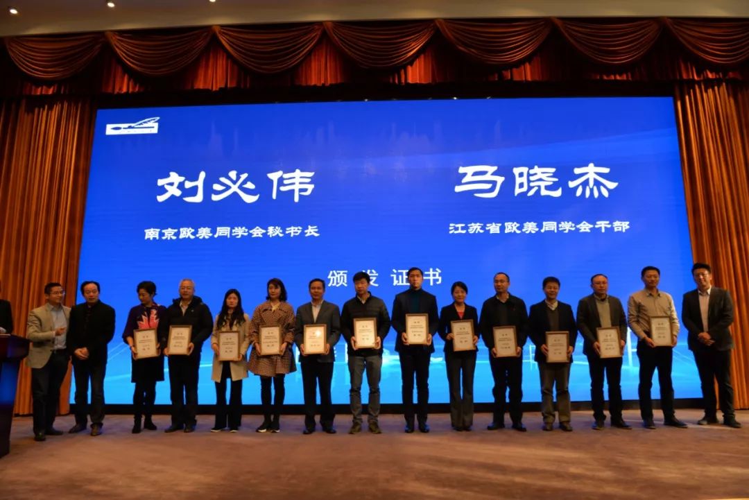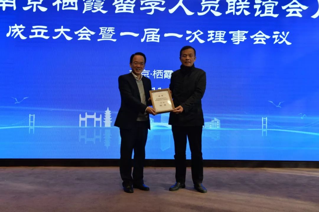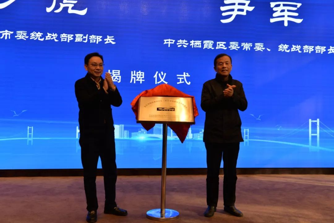 南京市委统战部副部长彭虎,栖霞区委常委、统战部部长尹军共同为栖霞欧美同学会揭牌。南京市委统战部副部长彭虎为会长程革颁发聘书。南京市委统战部知工处处长、南京欧美同学会秘书长刘必伟,江苏省欧美同学会干部马晓杰向理事会领导班子成员颁发证书。