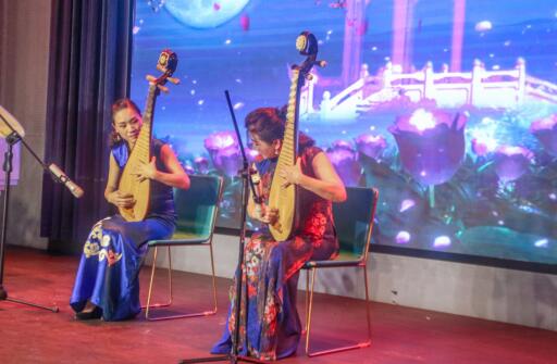 李昆丽教授的琵琶独奏《龙船》用中国的古典乐器一次次拨动琴弦,犹如一次次拨动在场学长的心弦,流淌着祖国源远流长的乐章。