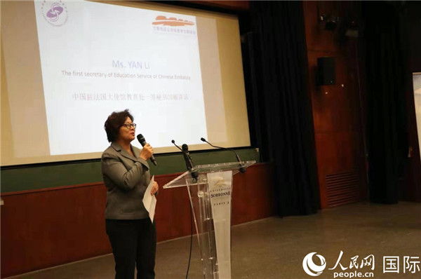 中国驻法国大使馆教育处一等秘书闫丽讲话。