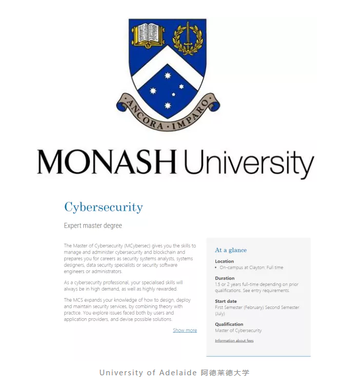 澳洲网络安全专业大盘点