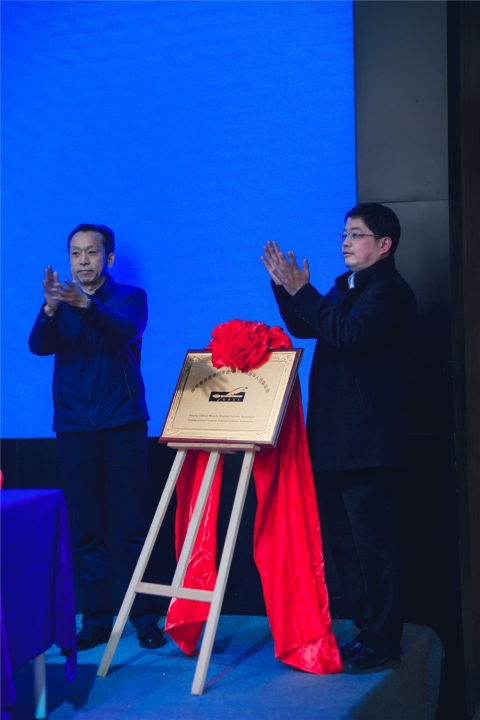 南京市委统战部一级调研员符建基,秦淮区委统战部副部长、台侨办主任赵志刚为南京秦淮欧美同学会(南京秦淮留学人员联谊会)揭牌。