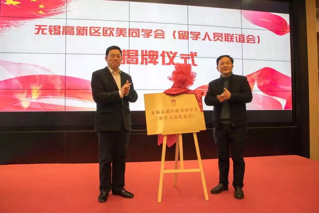 陈德荣、朱军共同为无锡高新区欧美同学会(留学人员联谊会)揭牌。