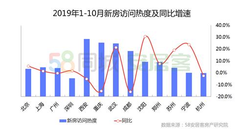 人来了,总要有住的地方。根据报告,2019年1-10月,西安、重庆、武汉、成都等城市新房访问热度远高于一线城市,而从同比增速来看,武汉、沈阳、宁波的访问热度均超过20%。