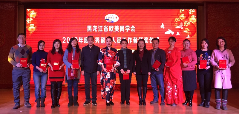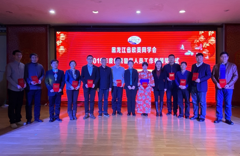 省欧美同学会会长杨宝峰院士通过视频向我省广大留学人员致新年贺词,丁宏代表黑龙江大学分会致辞,王宝安宣读省欧美同学会2019年度优秀留学人员工作者表彰决定。董浩、赵新宇、丁宏为荣获2019年度优秀留学人员工作者代表颁奖,以鼓励他们一年来对我省留学人员工作做出的突出贡献。