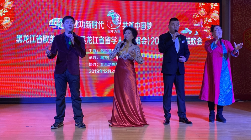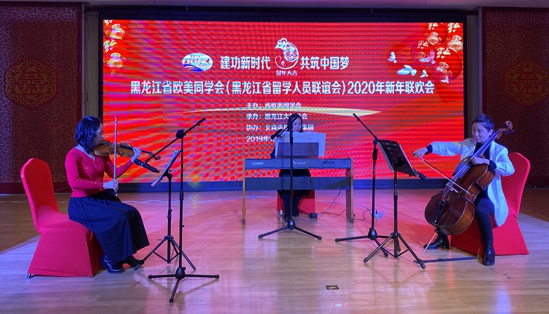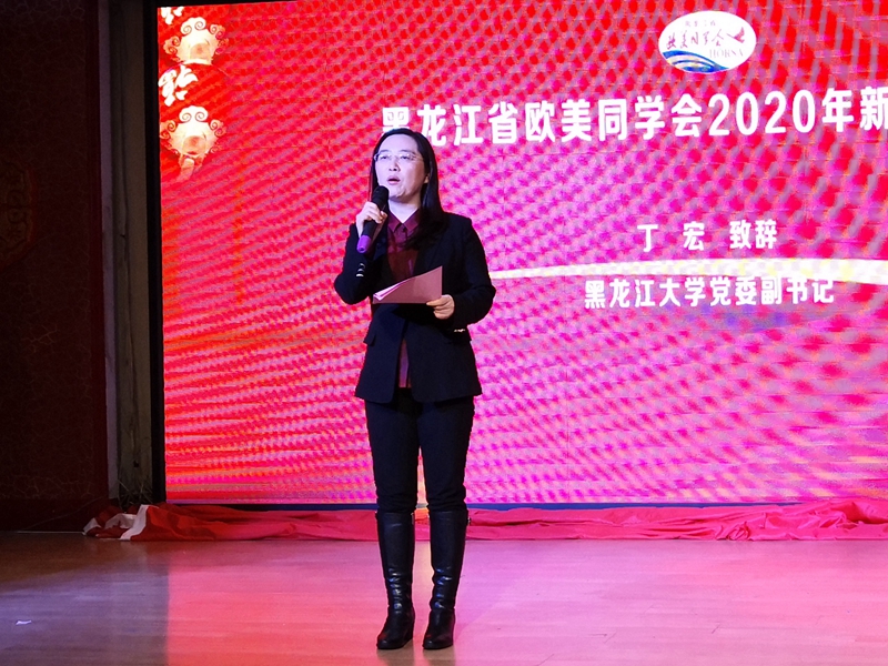 12月28日,省欧美同学会2020年新年联欢会在黑龙江大学举行。欧美同学会(中国留学人员联谊会)副会长董浩,省委统战部副部长、省委台办主任赵新宇,省委统战部党外知识分子处处长王安娜,黑龙江大学党委副书记丁宏,黑龙江大学党委常委、统战部部长焦方义,省欧美同学会副会长郭春景、郑秋鹛、李顺龙、姜玉洪、孙东波、黄东晶、李显筑、张举梅、许新、陈良勇、祝丹、王文鑫,秘书长王宝安,以及各团体会员、分会、全省各地留学人员代表等230人参加联欢会。
