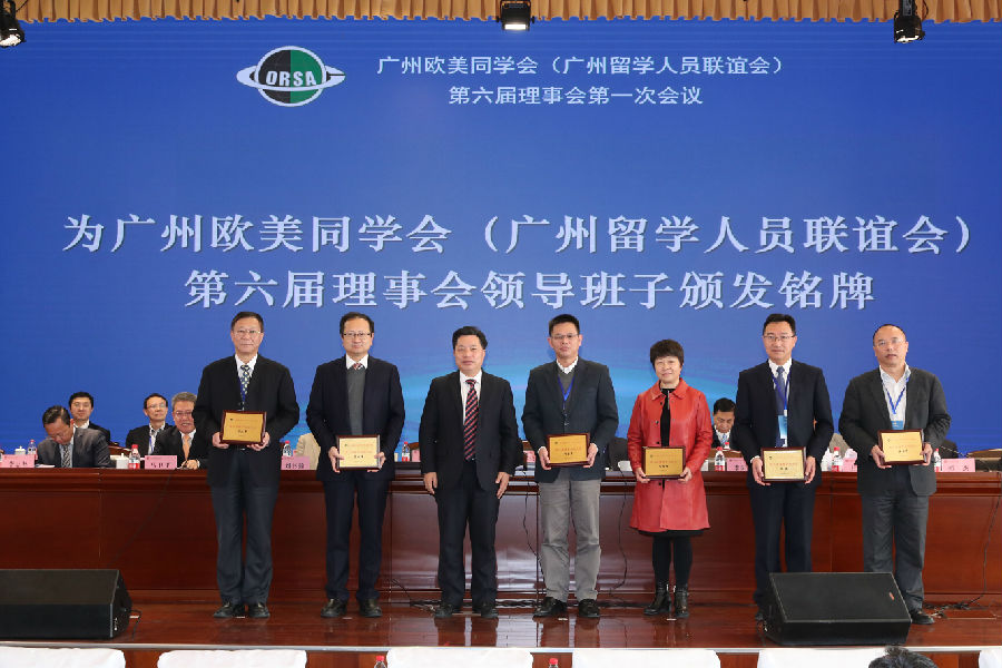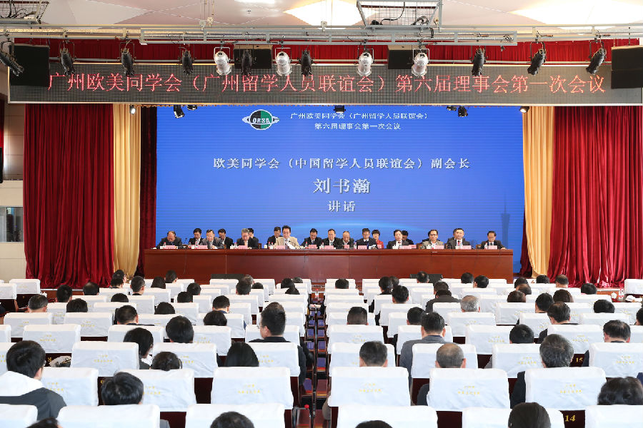 12月27日,广州欧美同学会(广州留学人员联谊会)第六届理事会第一次会议在广州市社会主义学院召开。欧美同学会(中国留学人员联谊会)副会长、天津商业大学原校长刘书瀚,广州市委常委、统战部部长卢一先,广东省委统战部副部长李阳春,广州大学校长魏明海等出席会议。