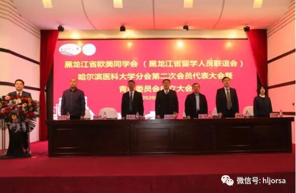 2020年1月8日上午,黑龙江省欧美同学会(黑龙江省留学人员联谊会)哈尔滨医科大学分会第二次会员代表大会暨青年委员会成立大会在雄壮的国歌声中开幕。省欧美同学会会长杨宝峰院士、省委统战部党外知识分子处处长王安娜、省欧美同学会秘书长王宝安等出席大会。哈尔滨医科大学校长张学院士、副校长孙殿军、党委副书记袁重胜、党委副书记贺景平、副校长方传龙、副校长赵光、党委常委组织部部长王小雪、党委常委宣传部部长东梅,以及各兄弟院校嘉宾、学校欧美同学会会员代表共200余人参加会议。贺景平主持会议。