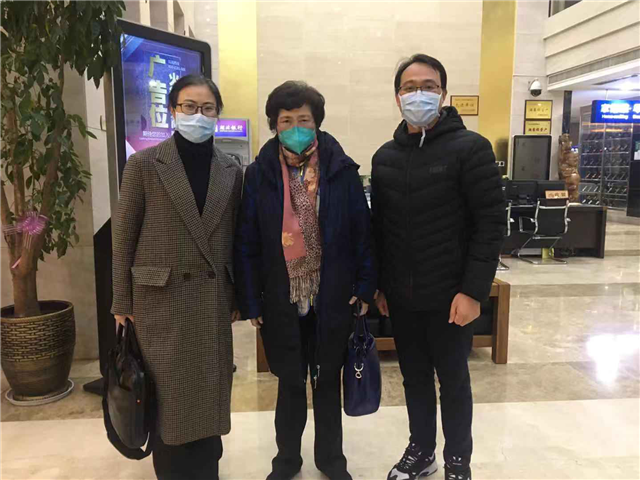 团队在武汉酒店合影。中间为李兰娟院士,右为朱梦飞。
