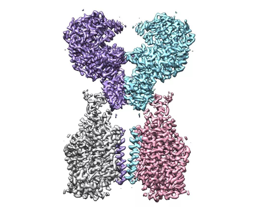 周强实验室针对这个问题进行了攻坚。第一步,他们要获取ACE2蛋白全长蛋白,但作为膜蛋白的ACE2本身很难在体外稳定获得。周强及博士后鄢仁鸿在文献中发现ACE2与肠道内的一个氨基酸转运蛋白B0AT1能够形成复合物。根据他们过去的研究经验,这个复合物极有可能稳定住ACE2。果然,他们通过共表达的方法获得了ACE2与B0AT1优质稳定的复合物,并利用西湖大学的冷冻电镜平台成功解析了其三维结构,分辨率达到2.9埃,对于病毒识别至关重要的胞外结构域分辨率为2.7埃。