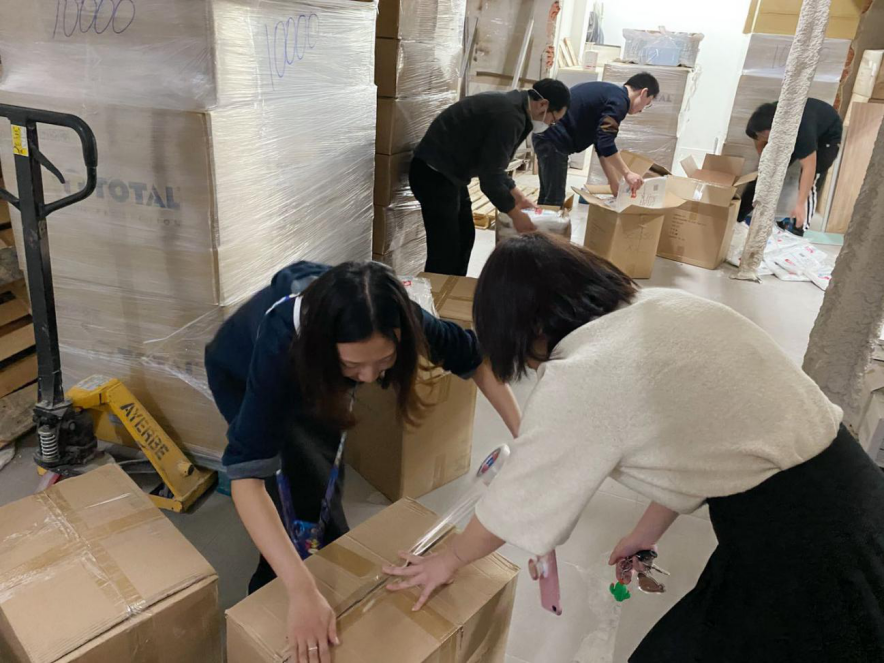 2月14日情人节,巴塞学联和各学生会的同学及志愿者们是在整理抗疫物资中度过的,采购到的所有物资均由同学们拆箱确认型号、清点过数量并检查生产日期与包装完整后再重新打包。经过一次次搬运,把多处物资聚集到一处。