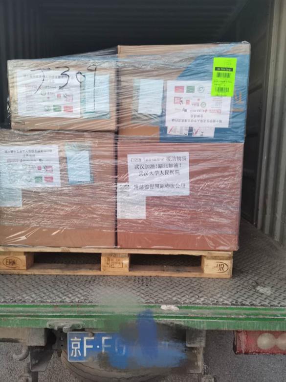 在各方支持下,第一批物资分别于2月初转交至华中科技大学附属协和医院及武汉大学中南医院。消息传回瑞士后,各学联群及工作群成员们不禁欢呼雀跃,纷纷向参与此次募捐行动的同学们及志愿者表示感谢,对此次行动的速度和效率感到欣慰。2月13日,第二批物资(1520件医用防护服)也顺利转交给武汉市儿童医院、武汉大学人民医院、武汉三院及华中科技大学附属同济医院等单位。