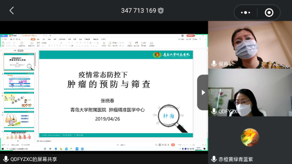 为发挥青岛欧美同学会留学人员专业优势,助力精准扶贫和健康乡村建设,我会轮值会长、中国临床肿瘤知名专家张晓春教授,于4月26日为黄岛、莱西等地帮扶村的群众在线分享健康保健的新理念、防癌抗癌的新主张。