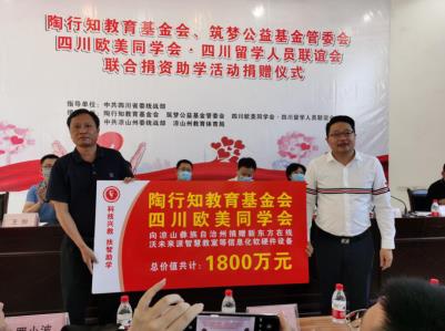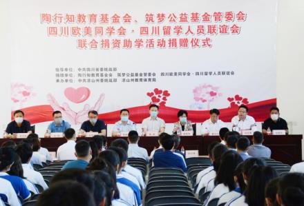 在四川省委统战部、农工党四川省委协调指导下,四川欧美同学会·四川留学人员联谊会携手陶行知教育基金会与筑梦公益基金管委会,向凉山州17个县(市)捐赠价值2300万元的信息化教育物资,助力凉山州教育信息化水平提升和教育扶贫事业。5月15日,陶行知教育基金会、筑梦公益基金管委会、四川欧美同学会·四川留学人员联谊会联合捐资助学活动在凉山州西昌市川兴中学举行。省委统战部副部长陈武出席活动并讲话,活动由农工党省委专职副主委、四川欧美同学会·四川留学人员联谊会副会长、青年工作委员会主任夏华祥主持。