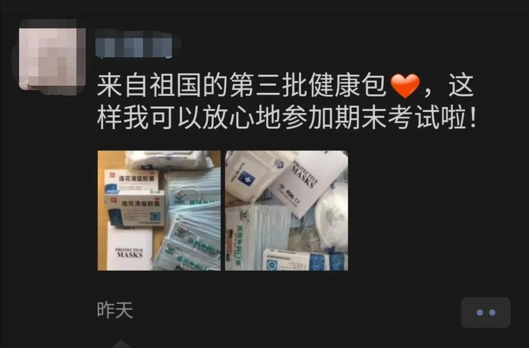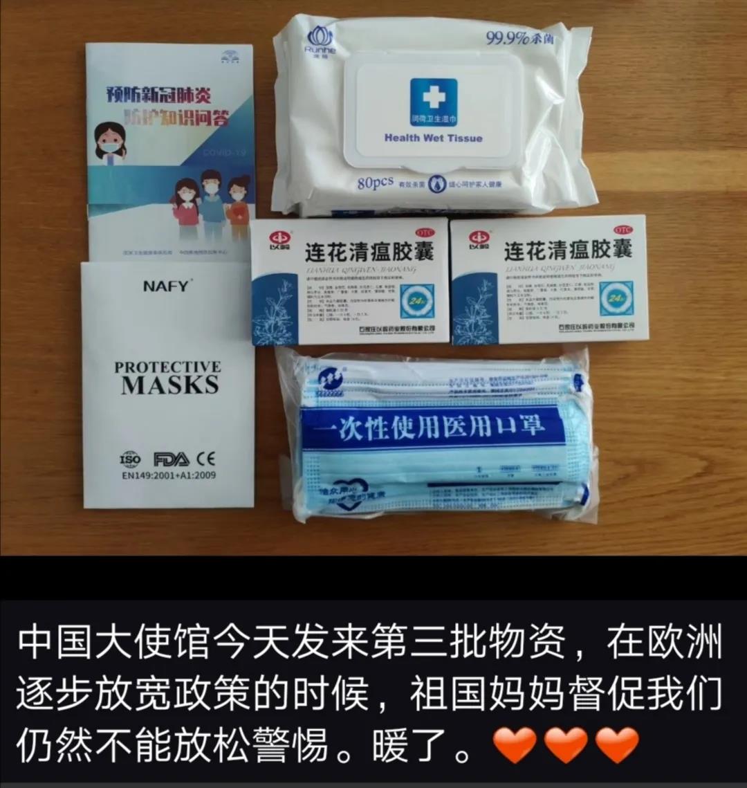 近日,驻捷克大使馆向在捷克中国留学生发放第三批“健康包”。这批“健康包”含一次性医用口罩、KN95口罩、连花清瘟胶囊、消毒湿巾和防疫知识手册。捷克新冠肺炎疫情发生以来,驻捷克大使馆高度重视在捷克留学生的安全和健康,积极筹措于3月和4月向留学生发放两批“健康包”。5月初,张建敏大使同留学生代表视频连线座谈,进行慰问交流。本次“健康包”由国内运抵捷克后,旅捷各学联积极协助分发,将祖国的关爱送到每位学子手中,并提醒大家继续做好防范不放松。同学们在收到“健康包”后,纷纷表示,小小“健康包”传递着祖国对留学生的关心和爱护,在当地开始复学复工的情况下,将进一步做好防护,认真完成学业。