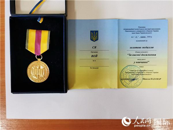图三:中国留学生夏伟获乌克兰国防大学最高荣誉金质奖章