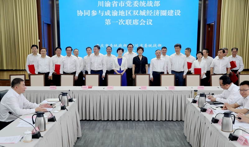 会议指出,以习近平同志为核心的党中央作出推动成渝地区双城经济圈建设战略部署以来,川渝合作进入了战略引领、高位推动、全面深化的新阶段。川渝两地统一战线要把思想和行动统一到中央和川渝两地党委的决策部署上来,按照今年3月17日四川重庆党政联席会议第一次会议部署,切实提高政治站位、抓住历史机遇、勇担使命责任,突出工作重点、发挥优势作用、务实推进实施,协同完善机制、确保合心合力、做到走深走实,树牢“巴蜀一家亲”理念、强化“川渝一盘棋”思维,为唱好“双城记”、建好经济圈贡献统战智慧力量。