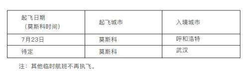 一、请审核通过的留学人员先行选择搭乘7月23日临时航班回国。莫斯科-武汉临时航班将视情况确定是否执飞。具体事宜另行通知。