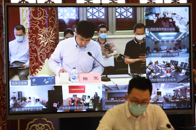 座谈交流会由欧美同学会党组书记、秘书长王丕君主持。欧美同学会留英分会理事、原副会长,中粮集团董事,中信银行原监事会主席欧阳谦应邀出席。欧美同学会党组成员、副秘书长程洪明出席。欧美同学会常务理事、浙江省欧美同学会副会长,浙江大学国际联合商学院院长、互联网金融研究院院长贲圣林作为学者代表发言。欧美同学会15个国别分会新一届理事会及专业委员会的代表在北京主会场参会。全国30家省级欧美同学会设立分会场,参会人员在线同步收看会议直播。
