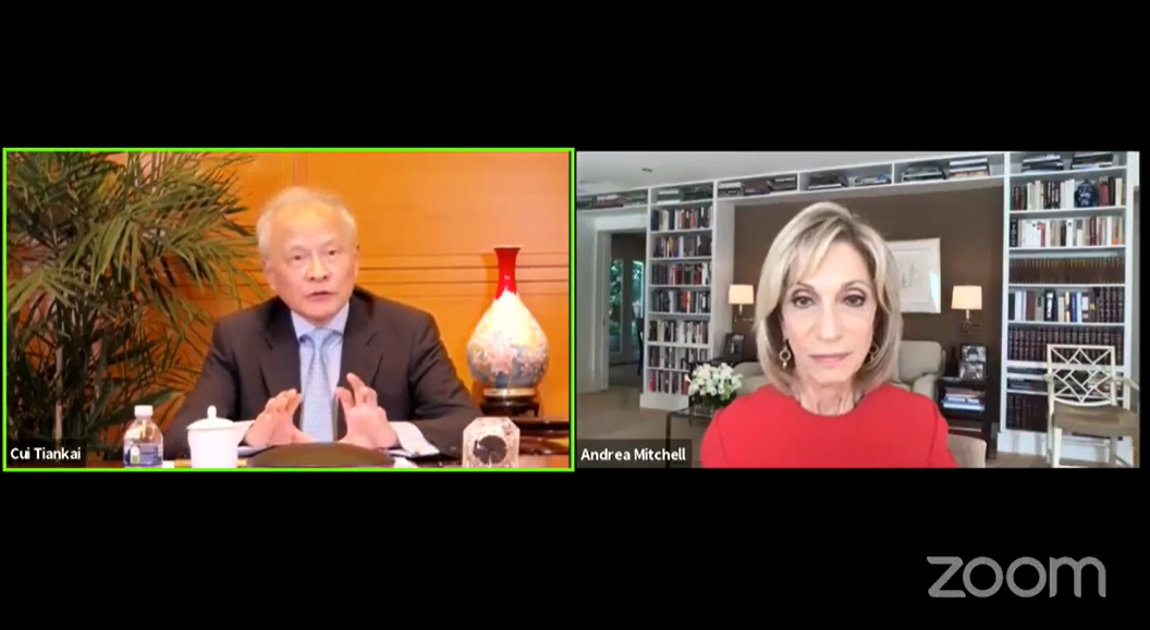 8月4日,崔天凯大使应邀出席2020年阿斯彭安全论坛,就中美关系有关问题与阿斯彭战略小组执行主任尼古拉斯·伯恩斯以及美国全国广播公司对外政策首席记者安德利亚·米歇尔进行在线对话,并回答观众提问。全文实录如下: