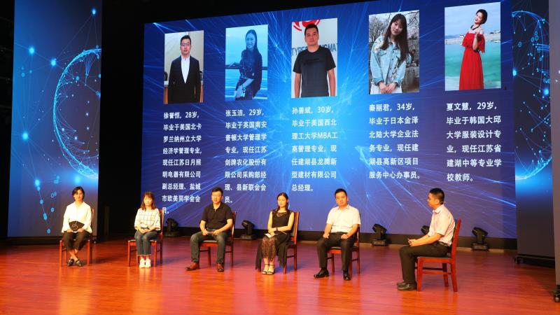 活动现场,广大归国留学人员回顾了王学浩等家乡前辈学成归来报效祖国的光辉事迹,来自江苏日月照明电器有限公司、江苏剑牌文化股份有限公司、建湖县龙腾新型建材有限公司、高新区项目服务中心、建湖中等专业学校的5名海归青年代表,分享了各自从海外回到建湖择业创业的心路历程以及宝贵的就业创业经验,诠释了新时代海归自强不息、奋发向上的拼搏进取精神。精彩的分享赢得现场观众阵阵掌声,大家纷纷表示,通过分享会的思想碰撞,更加清晰自身的角色定位,感受到肩上的责任和使命,今后将自觉融入家乡建设洪流,融入民族复兴的伟大事业。