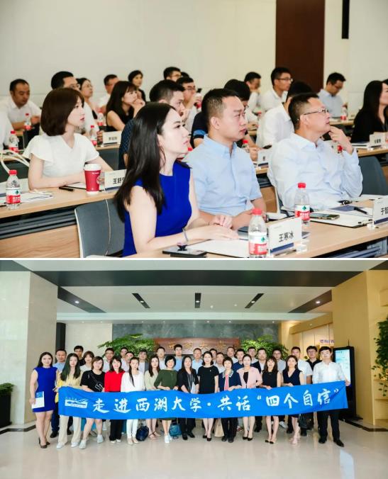 浙江省欧美同学会副会长丁黎在致辞中表示,“走进西湖大学,共话‘四个自信’”作为浙江省欧美同学会走进系列品牌活动的第一场,旨在加强思想引领,让归国留学人员更好地了解国情省情,感受祖国发展,拓宽认知视野,搭建交流合作平台。