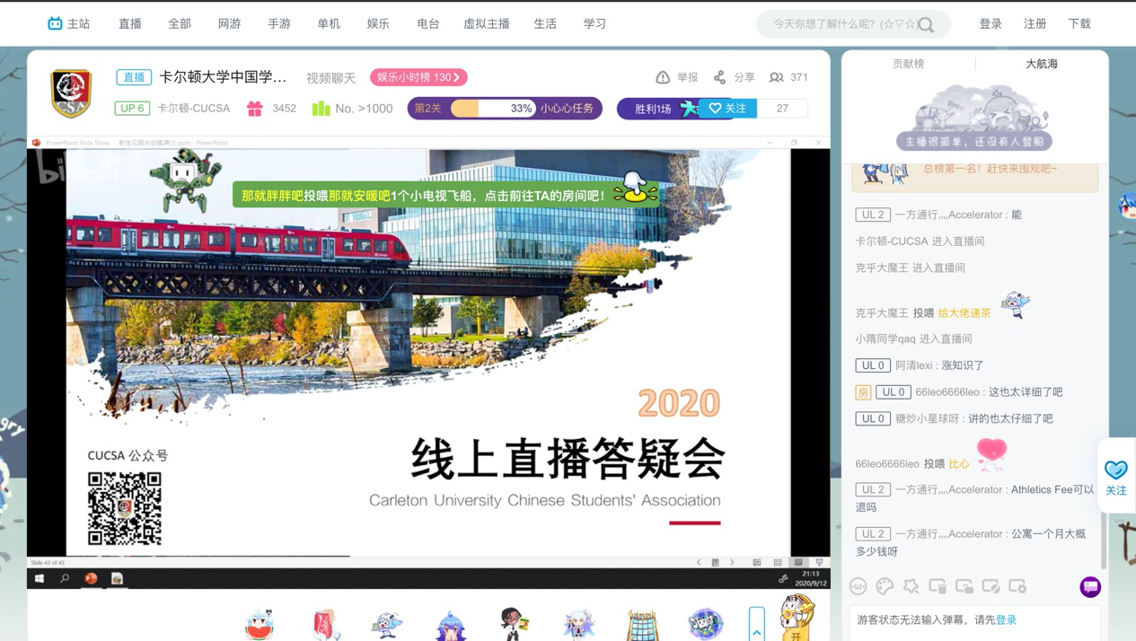 9月12日,中国驻加拿大使馆教育处公参于长学在线出席了卡尔顿大学中国留学生新生答疑会和渥太华大学华语在线辩论赛并致辞。
