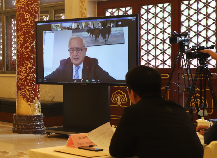 10月10日下午,第五届中法文化论坛筹备工作视频会议在中国和法国同步举行。全国人大常委会副委员长、欧美同学会(中国留学人员联谊会)会长陈竺,欧美同学会秘书长王丕君,欧美同学会副秘书长张明杰在北京会场出席会议。法国前总理、展望与创新基金会主席拉法兰,法国展望与创新基金会总干事德加莱,中法文化艺术研究中心副理事长、艺术8创始人佳玥在巴黎会场出席会议,苏州市人民政府副市长杨知评在苏州会场参会。会议由王丕君、德加莱共同主持。
