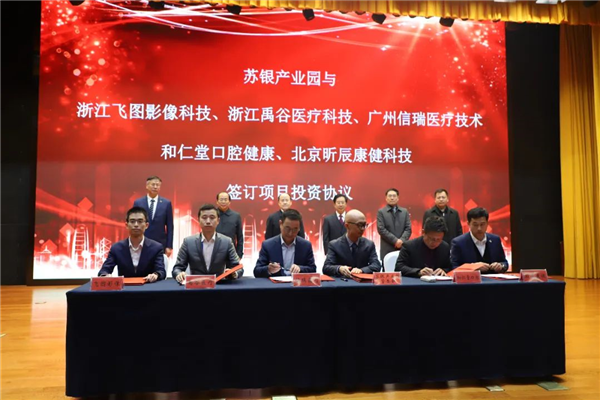 在当天的仪式上,苏银产业园管委会有关负责人与10家医疗健康相关的企业签订了投资协议。
