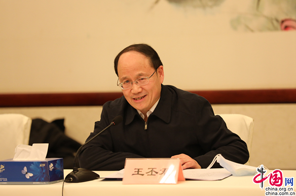 欧美同学会党组书记、秘书长王丕君主持会议。中国网戚易斌摄