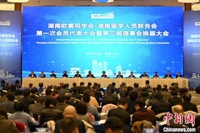 湖南欧美同学会·湖南留学人员联合会第一次会员代表大会暨第三届理事会换届大会现场。湖南省委统战部供图