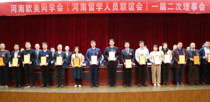 2020年12月26日,河南欧美同学会(河南留学人员联谊会)一届二次理事会在郑州召开。会议学习贯彻中共十九届五中全会、中央经济工作会议精神,审议通过了省政协副主席、河南欧美同学会会长张震宇所作工作报告,增补一届理事会副会长,表彰了先进集体和先进个人。省委统战部常务副部长李德才出席会议并讲话,省委统战部副部长、省工商联党组书记庄建球,省委统战部二级巡视员、干部处处长贺姝,副会长王为工、王慧智、朱明甫、李倩、徐步林、蒋晓龙、傅声雷,以及一届理事会理事和部分获奖代表共100余人参加会议。